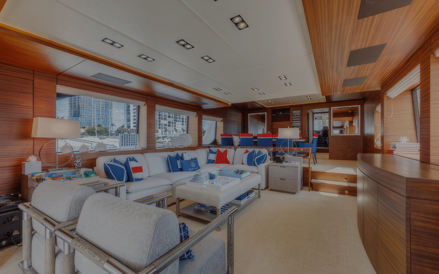 The large main salon is the heart of the yacht and has a contemporary ambiance with luxurious fangs to complete an amazing retreat for guests to relax and socialize. An elevated dining area sits up a level, with a formal dining table for 10 and a raised ceiling, creating an open and inviting gathering place.